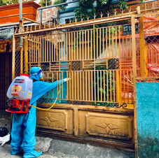 Lúc này mình đang phun thuốc khử khuẩn tại một con hẻm vùng đỏ nặng nhất ở quận Bình Thạnh đây.